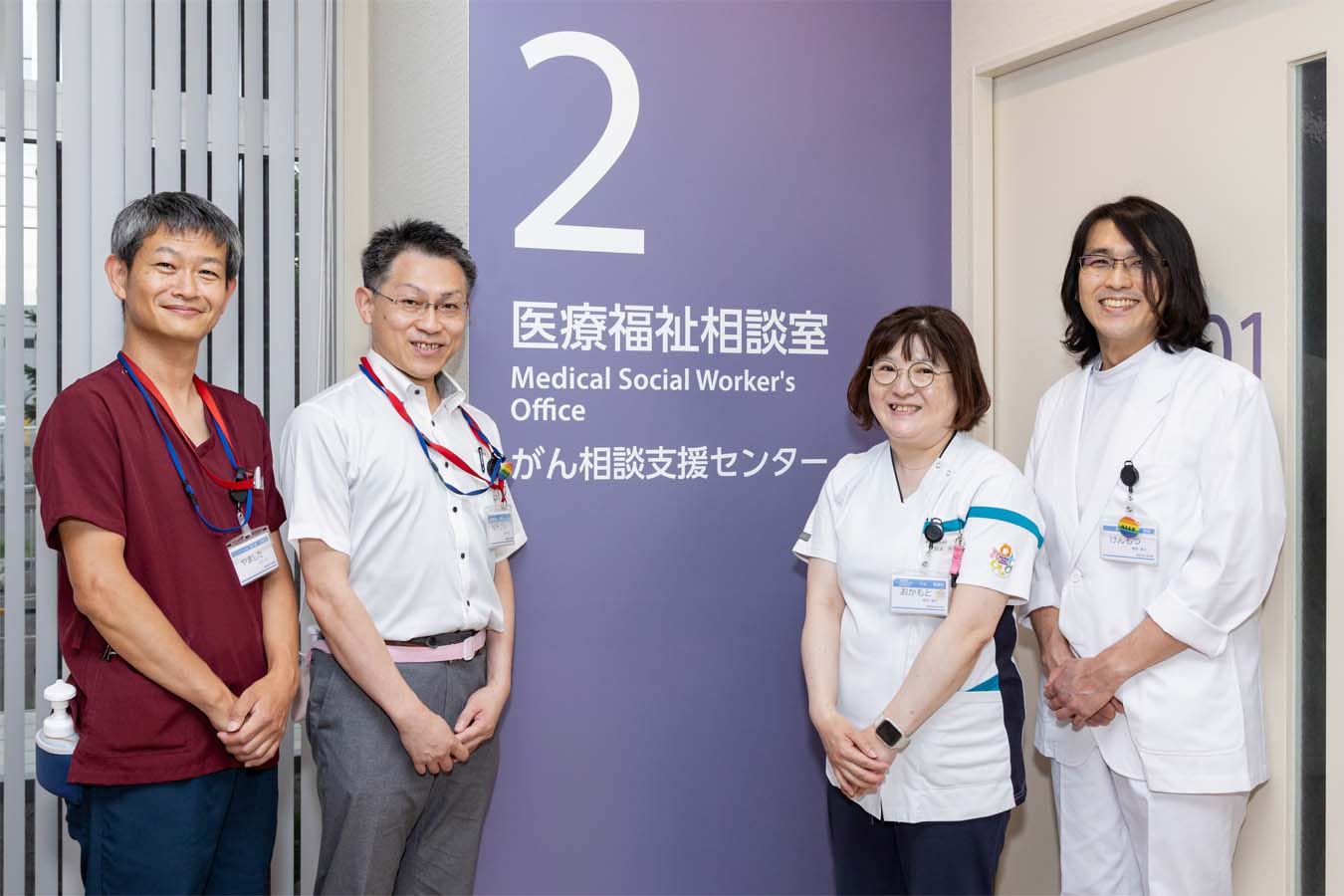 勤医協中央病院では、医師はもちろん、がん相談支援センターのスタッフ(ソーシャルワーカーや看護師)やリハビリの専門職など、院内の多職種が連携し、こうした悩みに寄り添っています。今回は、がん相談支援センターや診療の現場で活躍するスタッフの方々にお話を伺いました。(2025年8月取材)